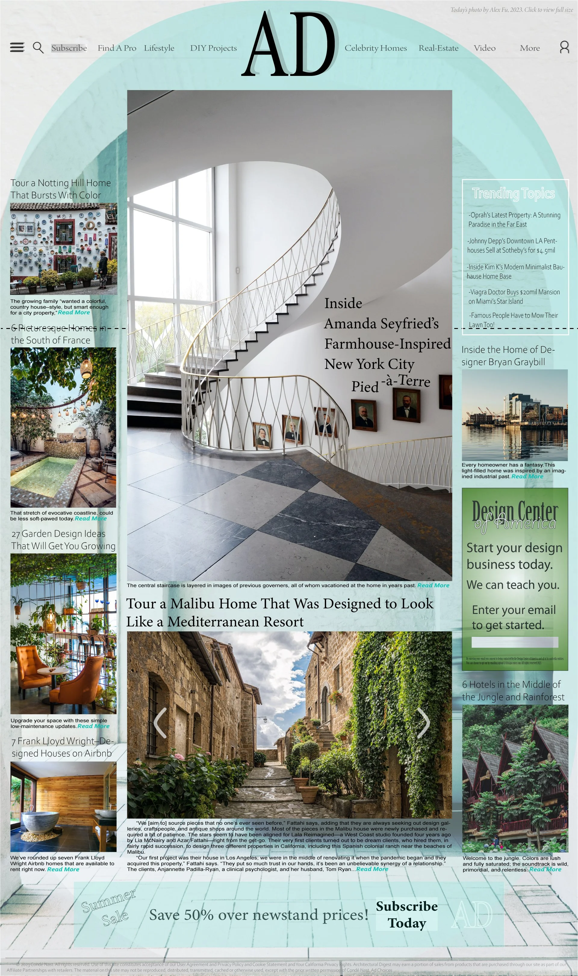 The project here was to redesign a pre-existing website’s landing page, in this case Architectural Digest (AD).
